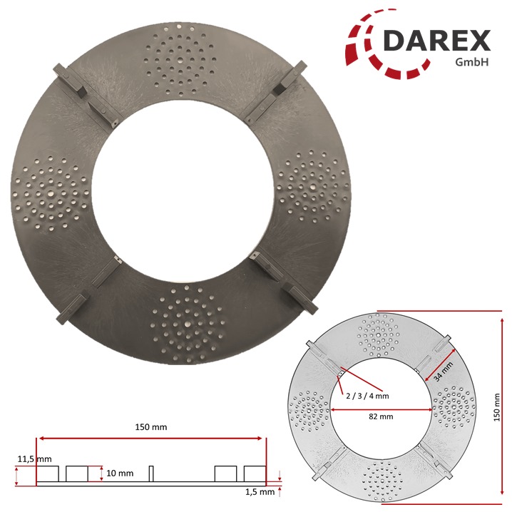 Durchmesser: 150 mm, Höhe: 11,5 mm, Fugenhöhe: 10 mm.